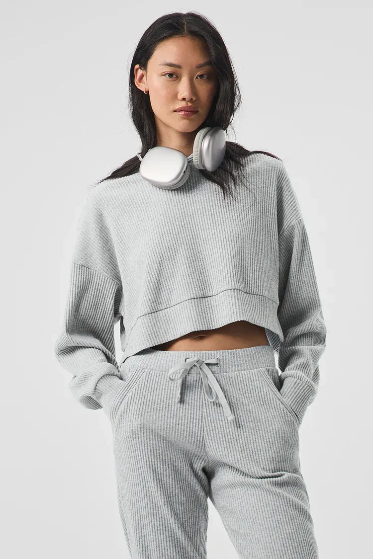 Stay super comfortable from the studio to the street and even when relaxing. The Nuse Sweatshirt is made with a soft ribbed knit and has a relaxed, cropped silhouette with slits on the sides. Pair it with sweatpants for a killer off-duty look.